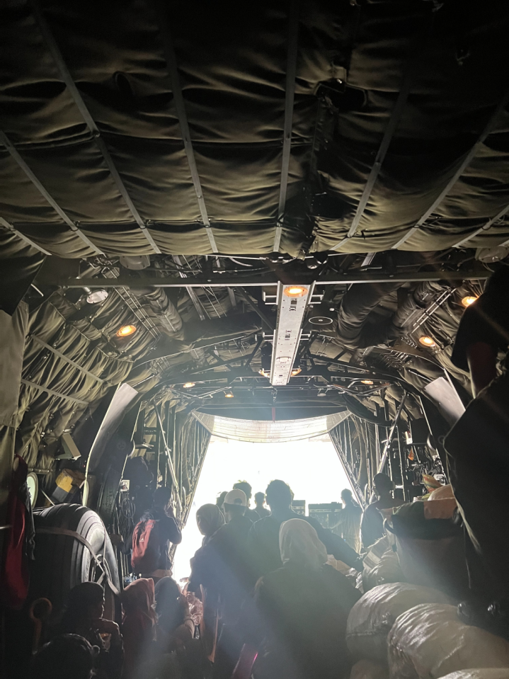 在军机上被转移的灾民。徐云香供图