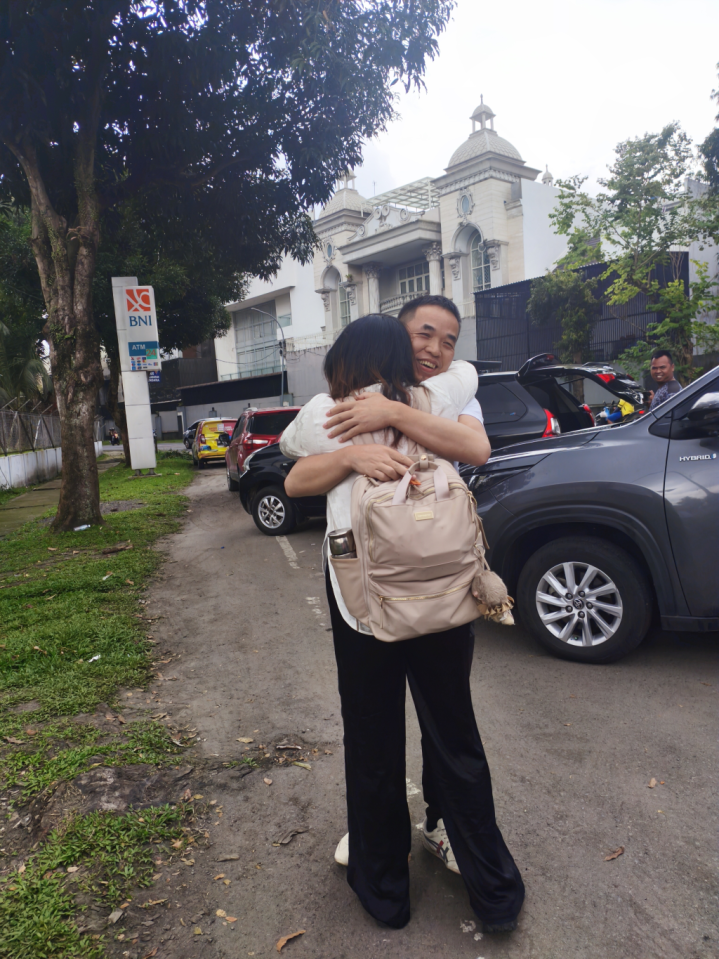 成功与“转了5次机才来到棉兰”的丈夫团聚。徐云香供图